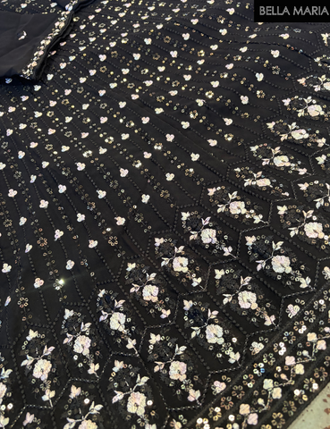 Three piece aline embroidered kameez. Slim dupatta and plain gharara.