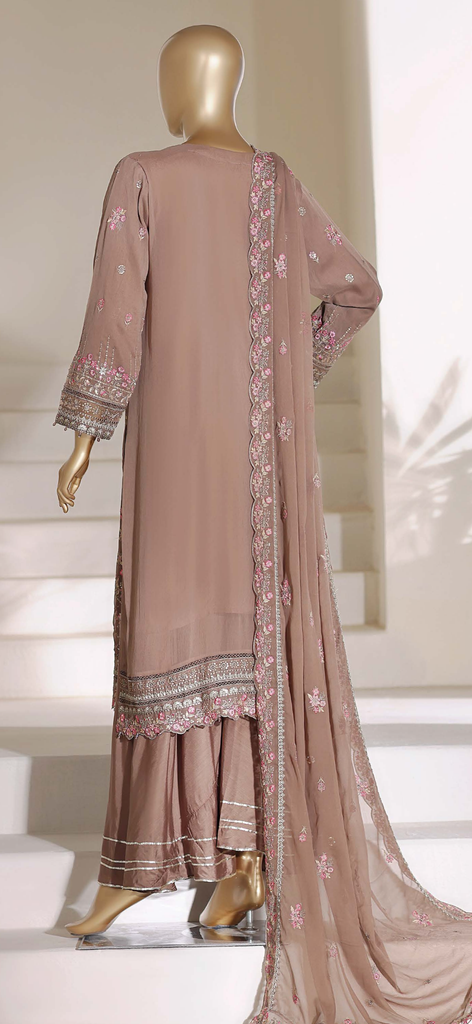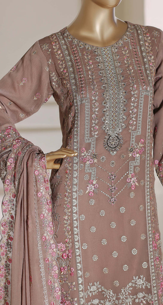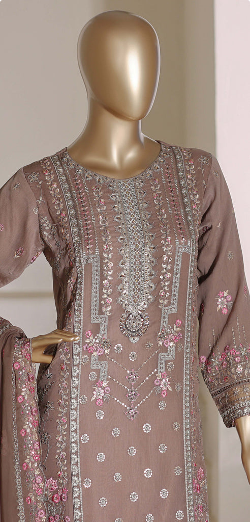 Kameez with sequins/beaded embroidery. Embroidered dupatta. Raw silk plazzo with gota.